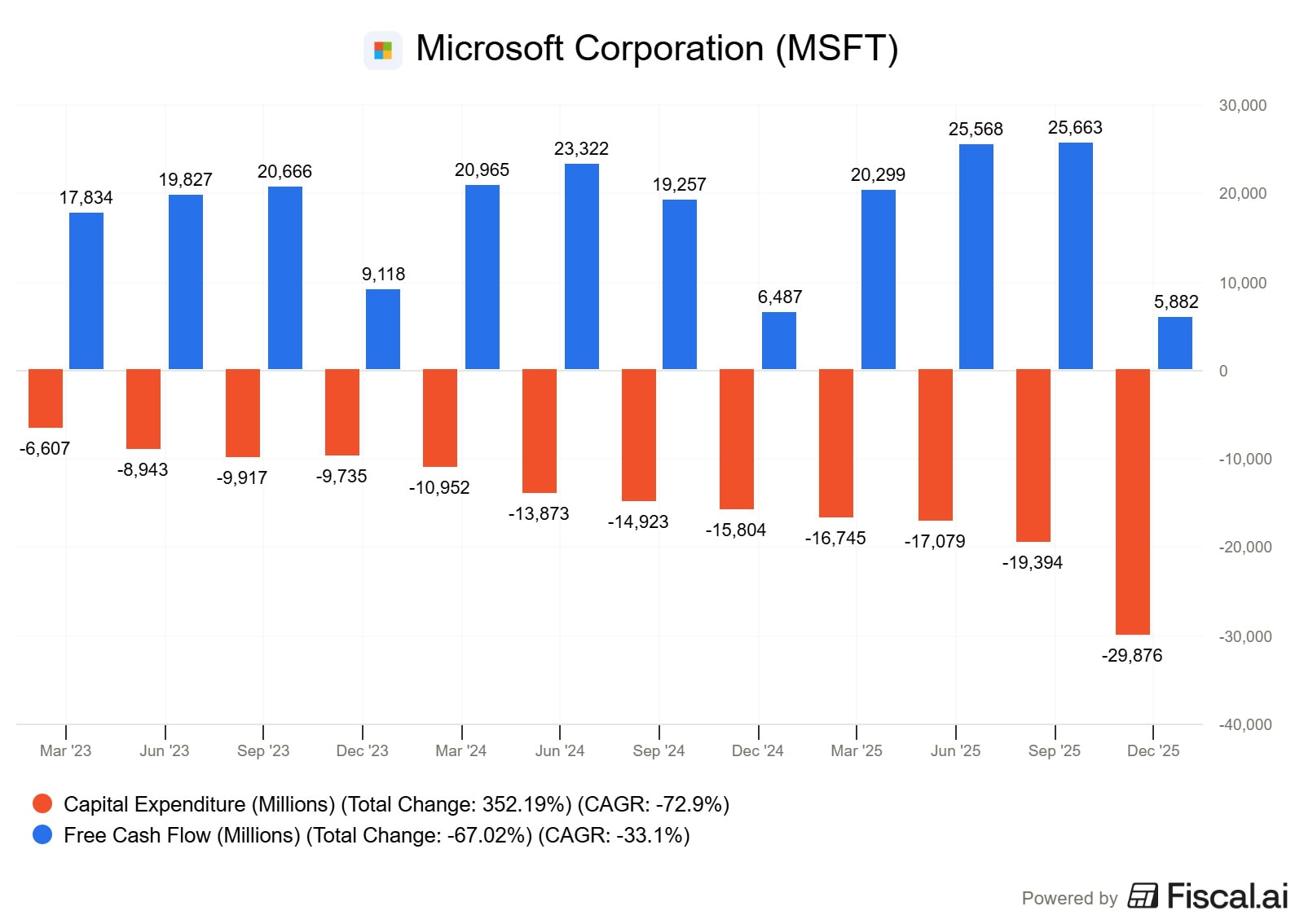 Příčinou poklesu byla obava, že obrovské investice do umělé inteligence a cloudové infrastruktury (např. investice do AI, OpenAI, hardware atd.) mohou dočasně snižovat ziskovost a volný cash-flow.