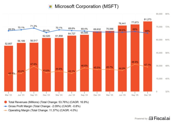 Microsoftpokračuje ve výrazném růstu tržeb, což potvrzuje, že jádrový byznys zůstává mimořádně silný.