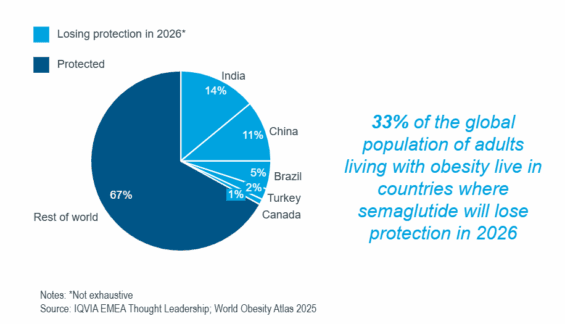V klíčových regionech jako je USA nebo Evropa, patent na semaglutid, který je základem léků Ozempic a Wegovy, vyprší kolem roku 2031-2032.