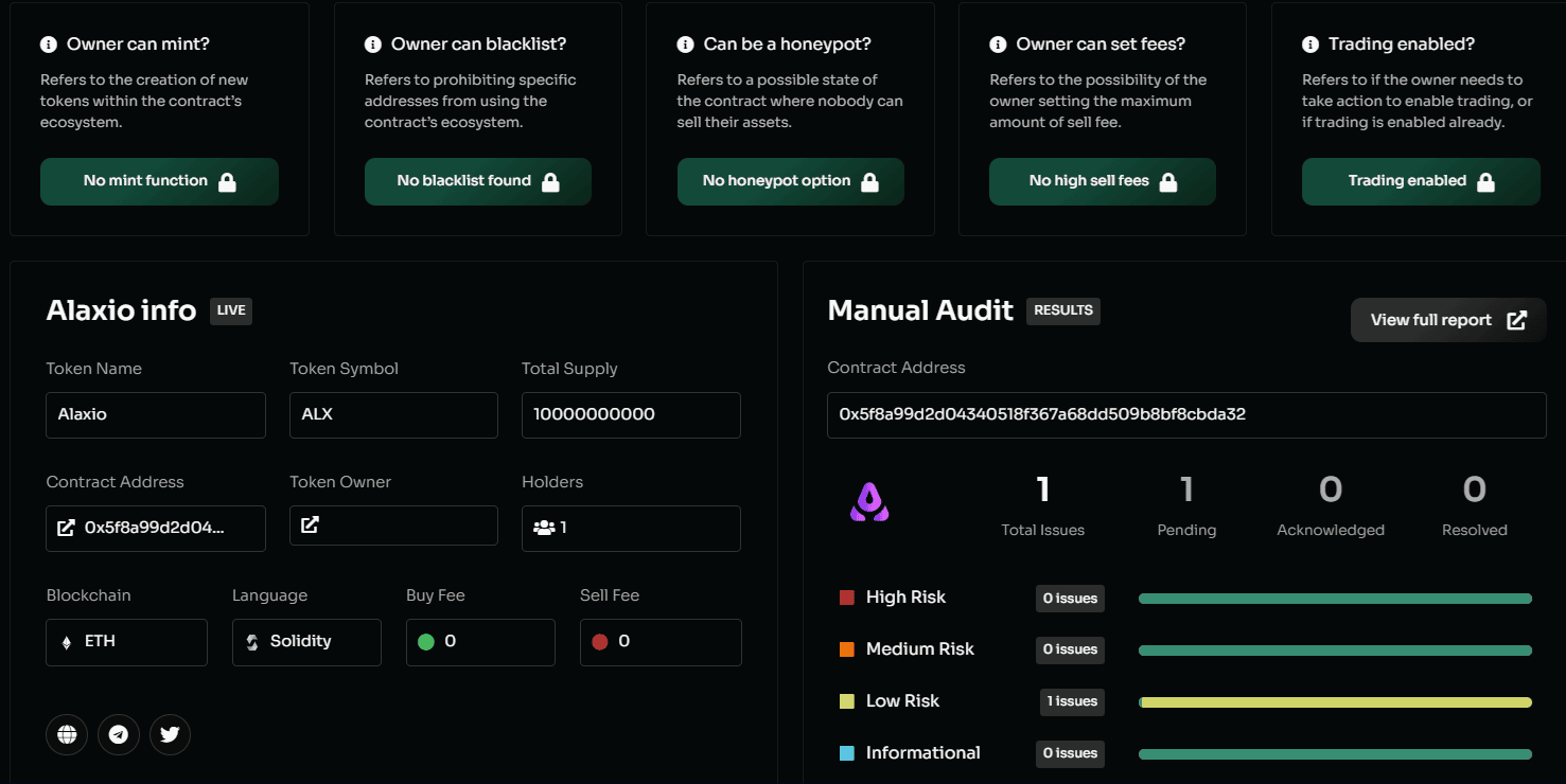5) Chybějící audit. U kvalitních kryptoměn bývá standardem, že jejich kód prošel auditem realizovaným třetí stranou.
