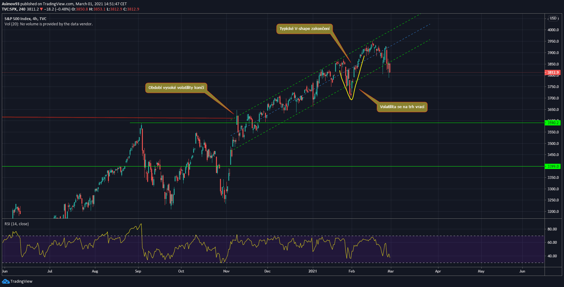 Zmíněné propady zpočátku vypadaly jako začátek něčeho horšího, ale trhu se přesto povedlo zakončení v podobě tzv. V-shape. Což laicky řečeno znamená velmi rychle vytažení ceny a pokračování v růstu.