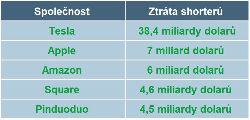 Jenom pro srovnání, druhým největším “nepřítelem” spekulantů byly akcie Apple, které způsobily shorterům ztrátu 7 miliard dolarů.
