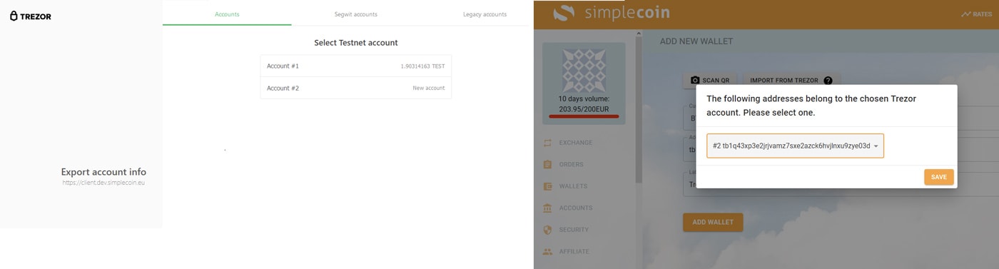 Nově mají zákazníci směnárny Simplecoin možnost rychle a jednoduše přidat adresu z Trezoru do objednávkového systému. Služba také umožňuje adresu ověřit a v neposlední řadě se postará i o placení.