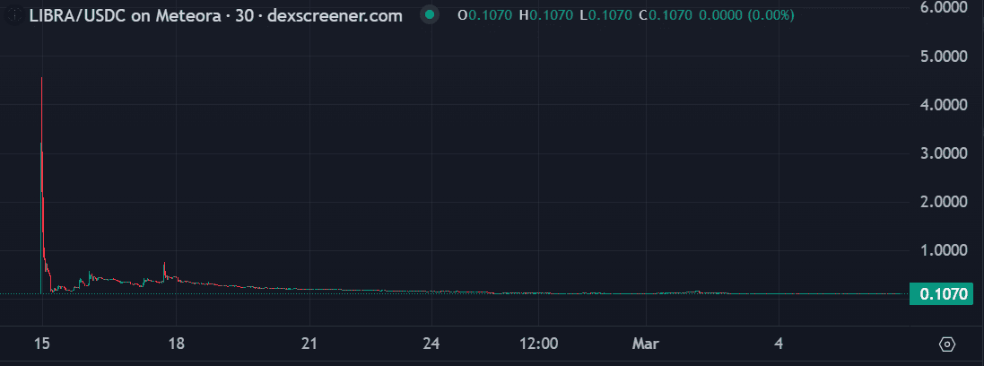 Cena tokenu LIBRA se momentálně pohybuje kolem 0,01 dolaru. Potenciální zotavení ceny je vysoce nepravděpodobné.