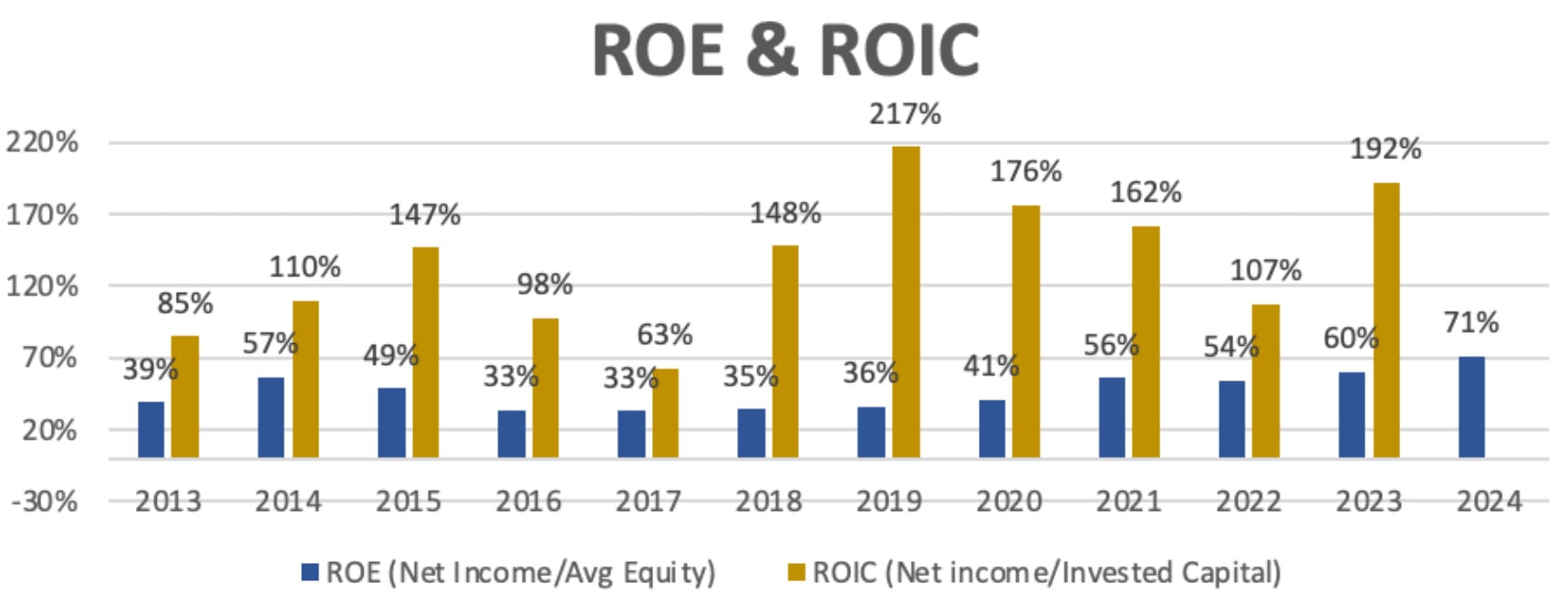 Návratnost na investovaný kapitál se zpravidla pohybuje kolem 10 %, nicméně tato firma je o řád jinde a překračuje 100 %.