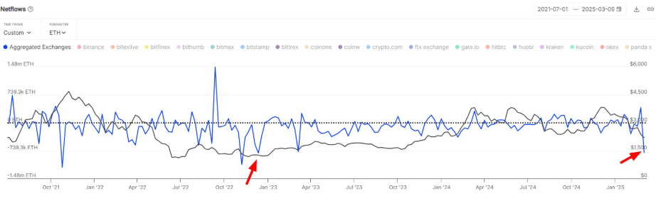 Pozitivním faktorem však je, že v uplynulém týdnu investoři přesunuli mimo burzy Ethereum v celkové výši 1,8 miliardy dolarů. To představuje nejvyšší týdenní odliv od prosince 2022.