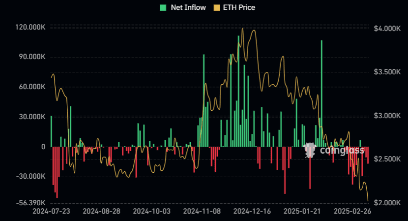 Vývoj peněžních toků v rámci Ethereum ETF
