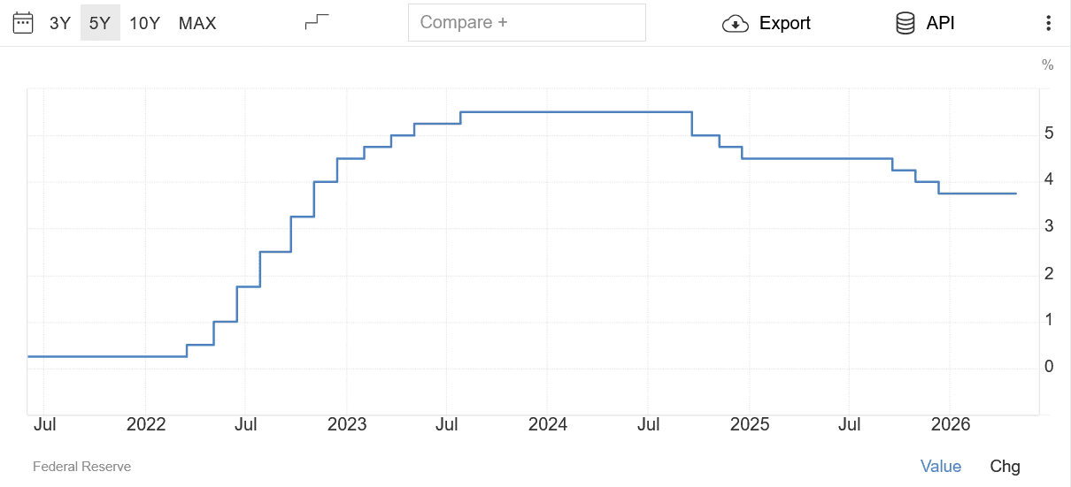 Úrokové sazby v USA a jejich vývoj za posledních 5 let.