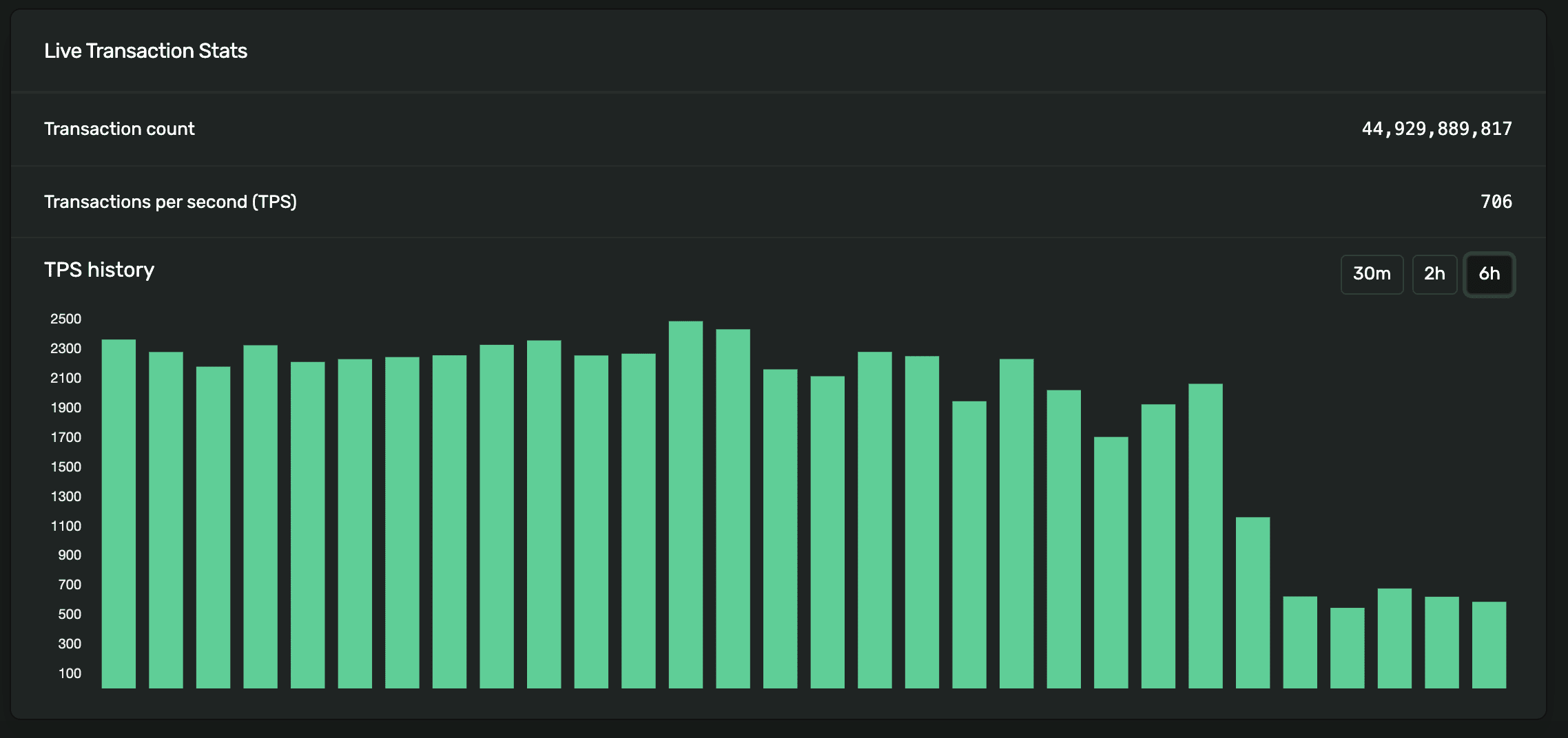 V době psaní článku rychlost validace transakcí na Solaně opět klesá