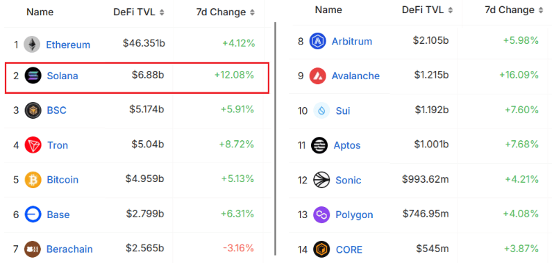 Za posledních 7 dní toto číslo narostlo o 12 % a Solana tak překonává konkurenci jako Tron, Base a Berachain.
