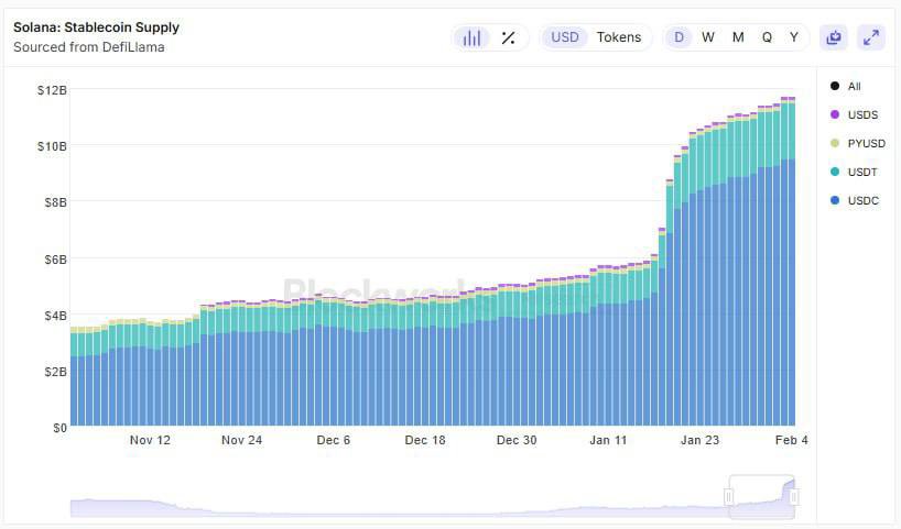 Tržní kapitalizace stablecoinů na Solaně v poslední době prudce vzrostla a nyní přesahuje 13 miliard dolarů, přičemž o rok dříve to bylo méně než 5 miliard dolarů.