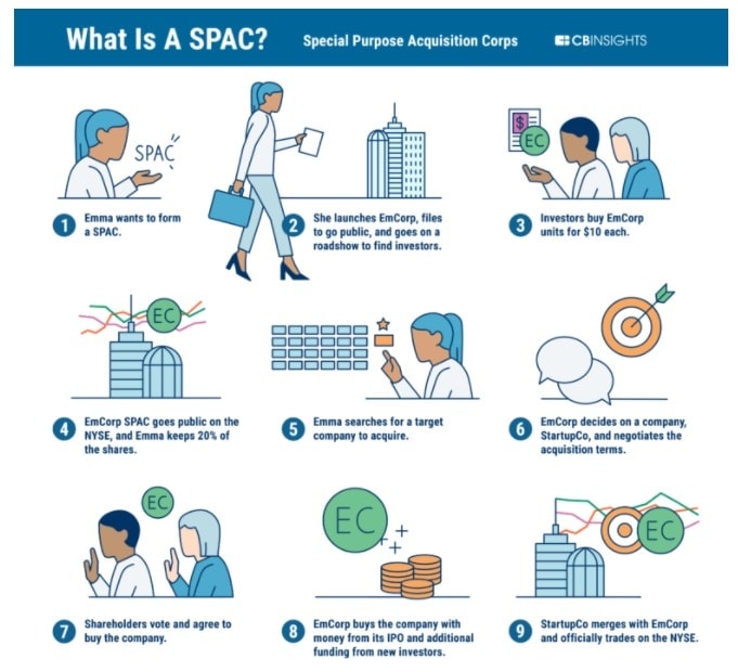 SPAC lze zjednodušeně vnímat jako hromadu peněz určenou k převzetí a uvedení nějaké firmy na veřejné trhy. Tato hromada je pak zpravidla umístěna na nějakém svěřeneckém fondu. Zpočátku mají k akciím SPAC přístup pouze soukromí investoři, později se však tyto akcie stávají volně obchodovatelné, a to klidně i před ohlášením cílové akvizice. Pokud k mergeru nedojde během dvou let od IPO SPAC, firma zaniká a investorům jsou vráceny jejich finanční prostředky.