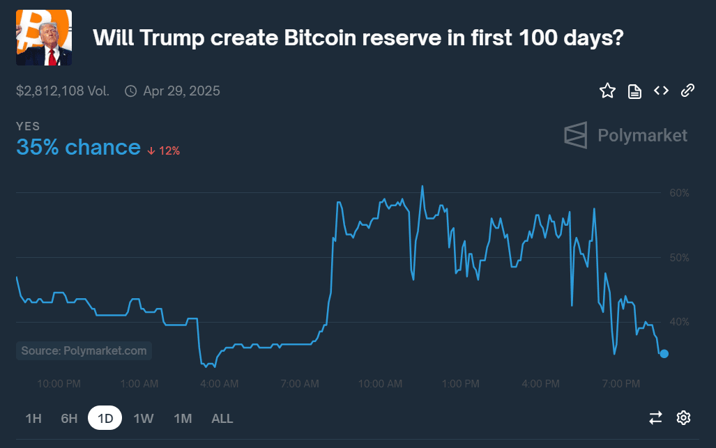 Spekulace o možném zavedení bitcoinové rezervy ze strany Trumpovy administrativy podpořily data predikčního trhu Polymarket.