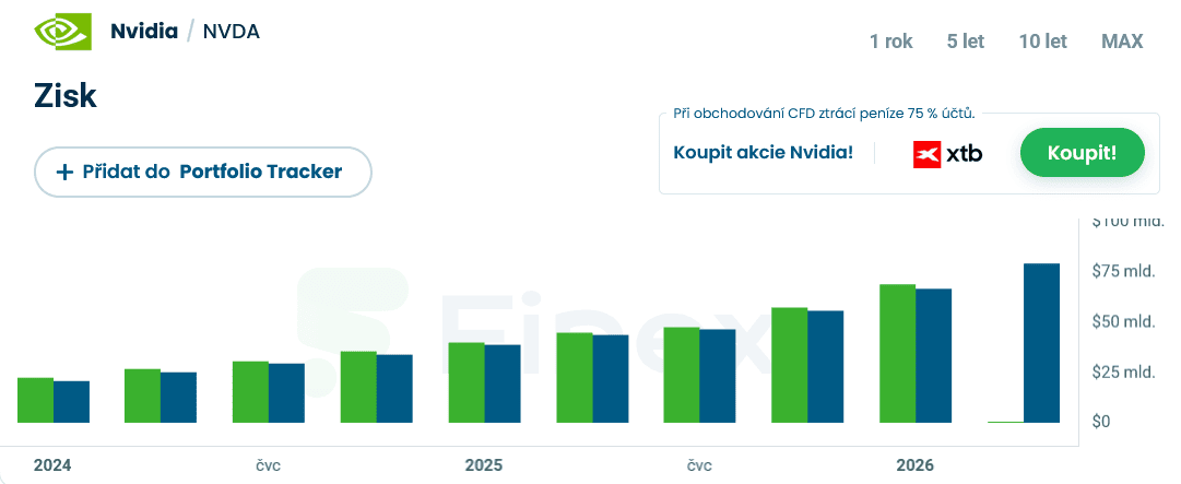Pokud si Nvidia udrží takto vysoký tržní podíl a celý sektor dosáhne zmiňovaných 4 bilionů dolarů, její roční tržby by přesáhly 1,44 bilionu dolarů.