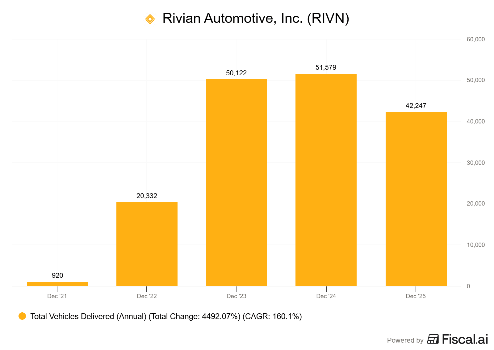 Vývoj množství dodaných aut Rivianu