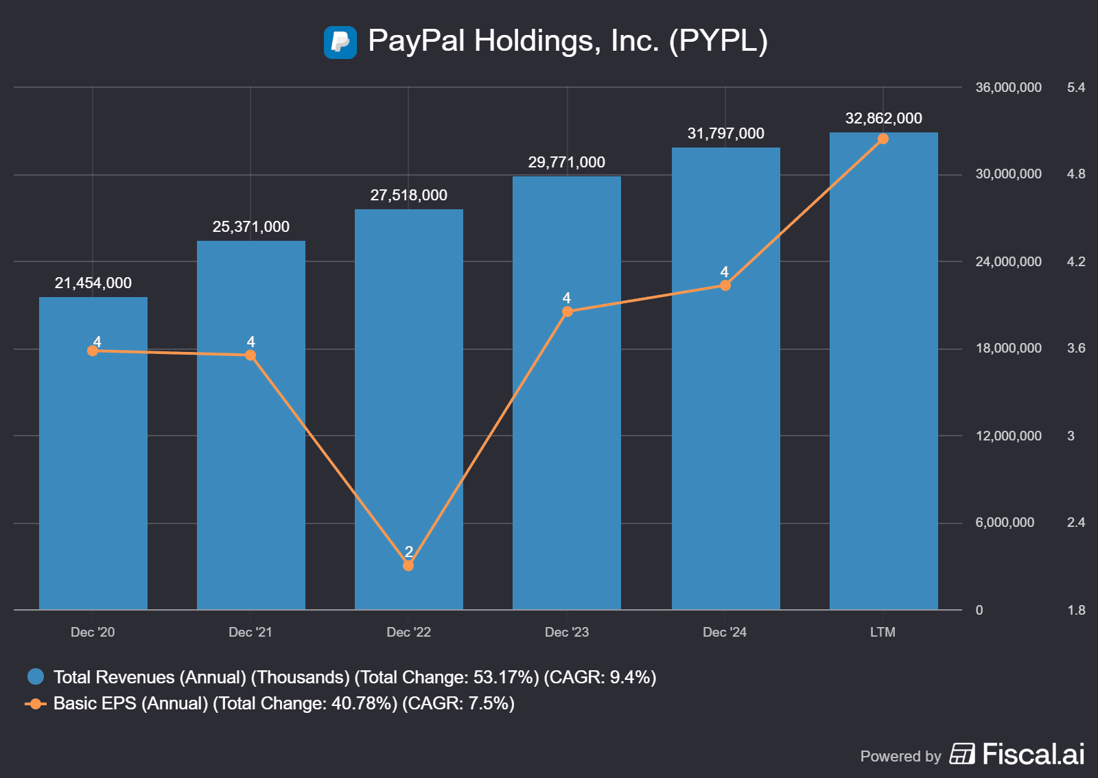 Z finančního hlediska PayPal překonal v minulém kvartálu očekávání trhu. Ve třetím čtvrtletí vykázal meziroční 7% nárůst tržeb a 12% nárůst zisku na akcii (EPS).