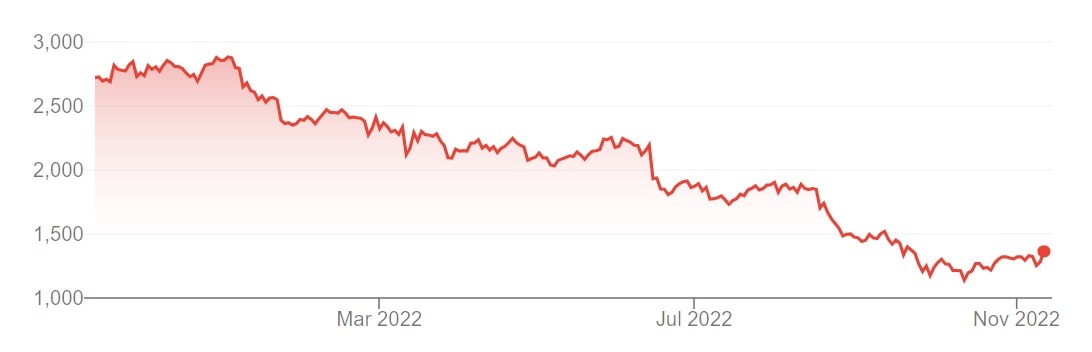 Vývoj ceny akcií Persimmon za posledních 12 měsíců