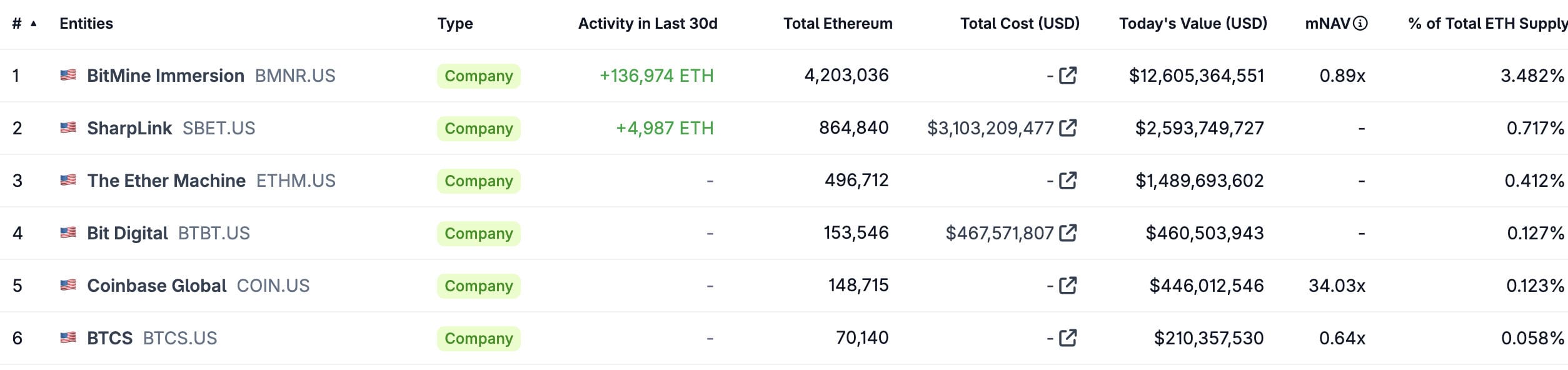 V rámci svých aktuálních aktiv BitMine vlastní 4 203 036 ETH, což odpovídá přibližně 3,21 miliardám dolarů na základě cen Coinbase.