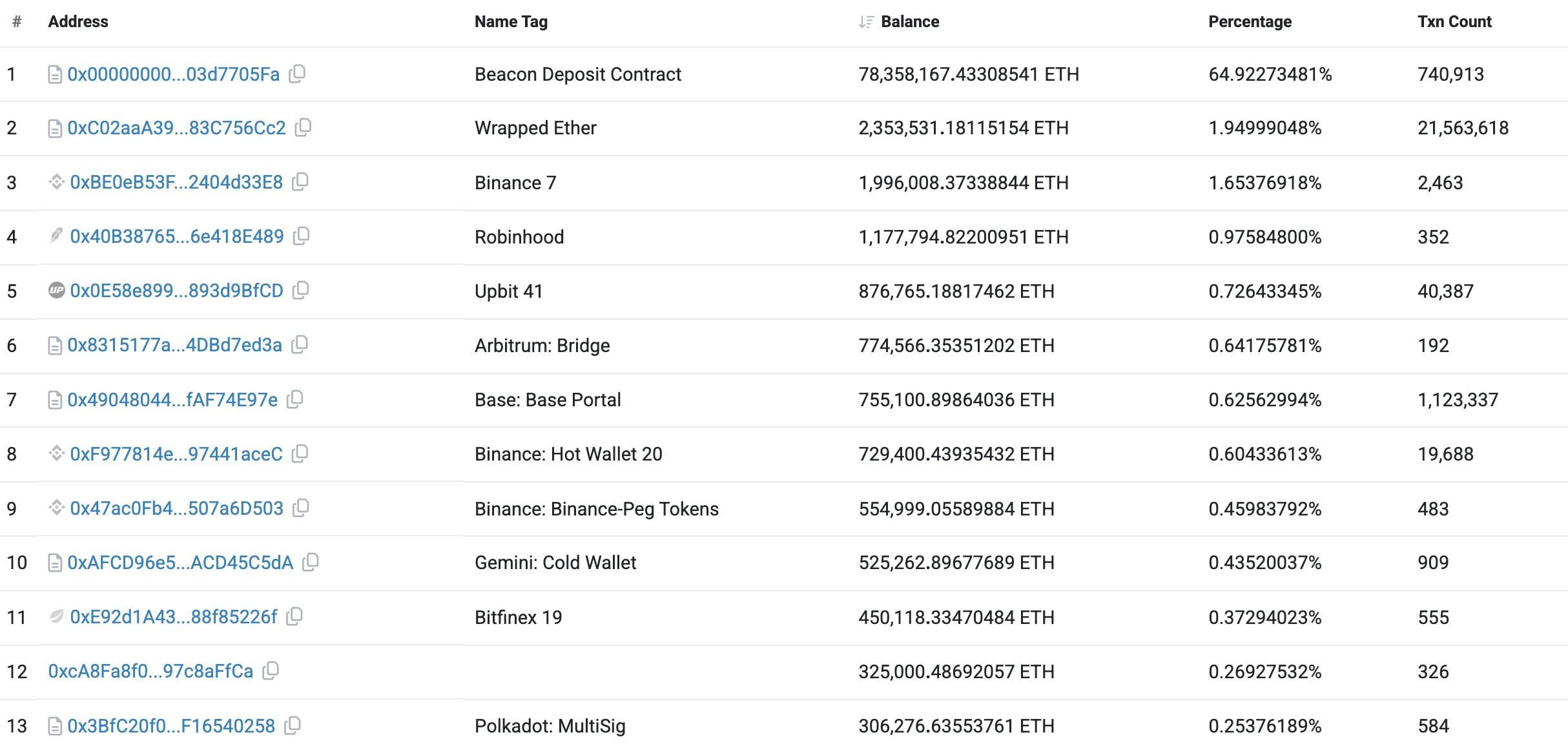 Společnosti s nejvyššími držbami Etherea