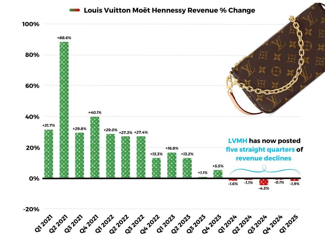 LVMH, symbol francouzského luxusu a investorské jistoty, čelí nebývalému útlumu. Pět kvartálů za sebou vykazuje pokles tržeb. Existuje naděje na obrat?