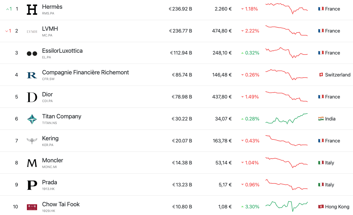 Žebříček nejhodnotnějších luxusních společností