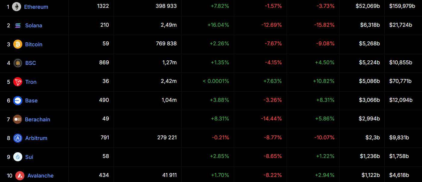 Total value locked jednotlivých chainů
