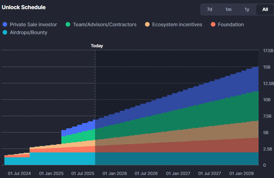 Pokud se vám projekt zalíbil, mějte na paměti, že Ethenu čeká odemčení několika milionů tokenů a budou se tak efektivně ředit současní držitelé kryptoměny.