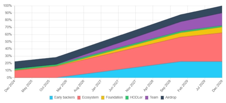 Celková maximální zásoba MOVE je 10 miliard mincí a aktuálně je v oběhu něco přes 225 milionů kusů. Neuvolněné tokeny dostanou v příštích letech prvotní podporovatelé a poslouží i jako pobídka na rozvoj ekosystému.