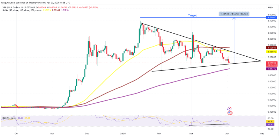 Po výprodeji na finančních trzích v posledních dvou dnech, který způsobil Donald Trump oznámením recipročních obchodních cel, se XRP stabilizovalo nad úrovní 2 dolarů. Tato úroveň je pro kryptoměnu významným supportem.