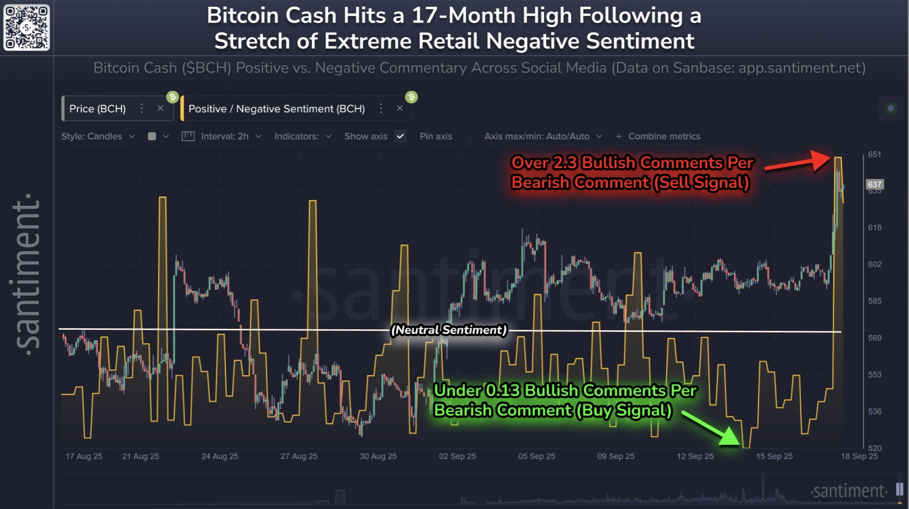 Vývoj sentimentu na Bitcoin Cash