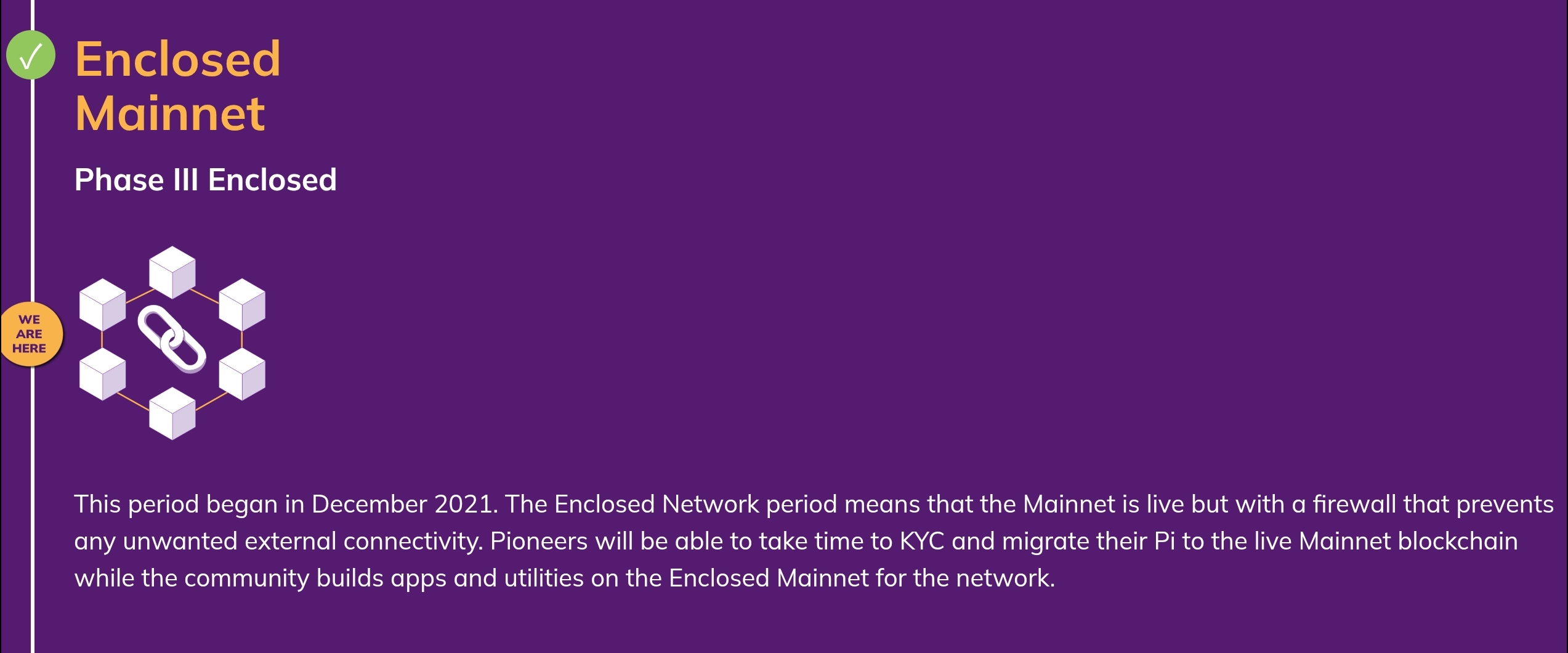 Po několika letech fungování v uzavřeném ekosystému Pi Network v únoru 2025 spustila takzvanou externě připojenou hlavní síť (mainnet).
