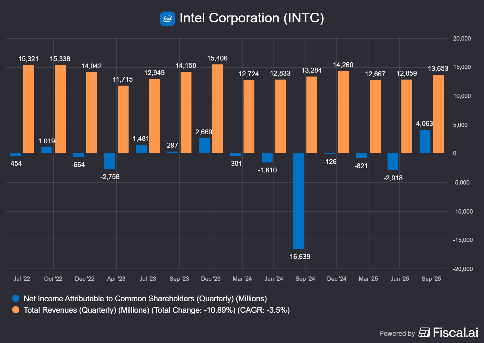 Tržby poslední roky klesají a Intel prodělává peníze navzdory probíhajícímu AI boomu, kdy konkurence vydělává rekordní peníze.