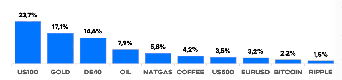 To je posun oproti H1 2024, kdy dominovaly komodity – XTB tak více těžilo z volatility indexů jako Nasdaq 100 (US100), DAX (DE40) či S&P 500 (US500).
