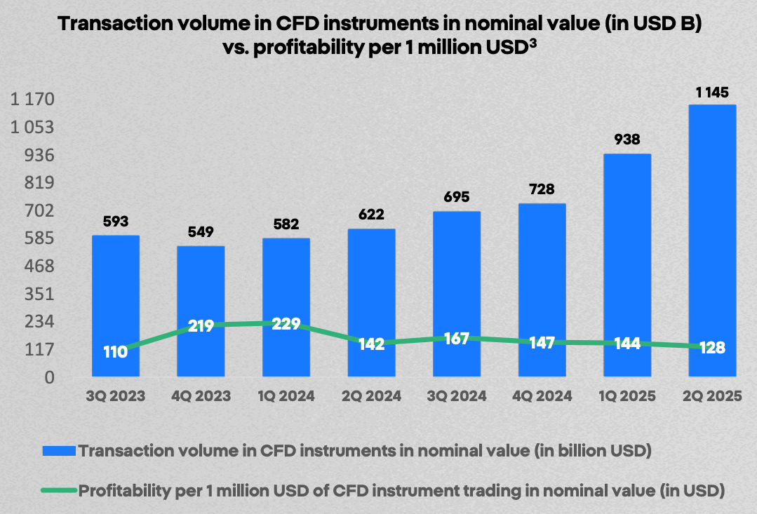 Aktivních klientů je 853 938 a celkový počet klientů přesáhl 1 704 000. Čisté vklady dosáhly 7,24 mld. PLN a objem obchodů v CFD (v lotech) stoupl o 42 % meziročně.