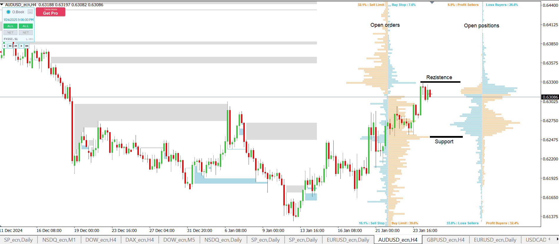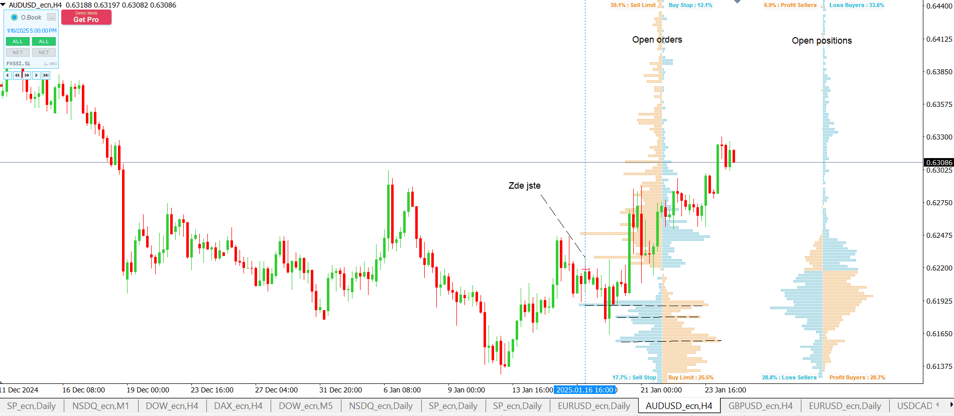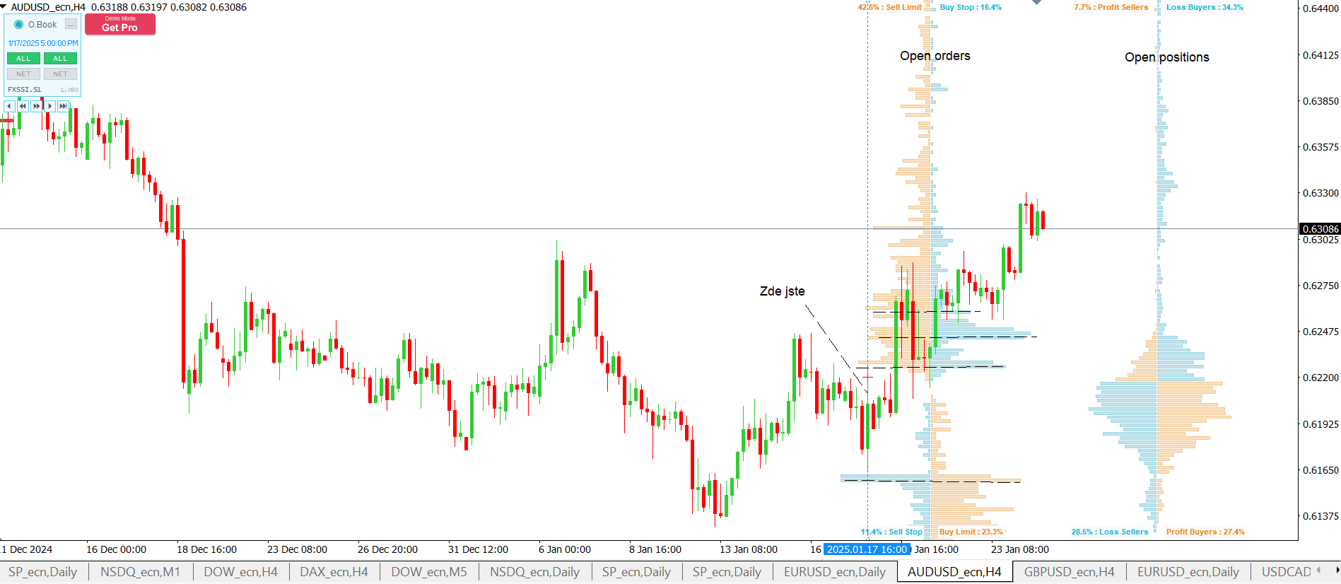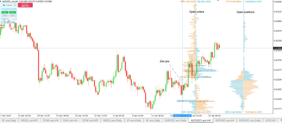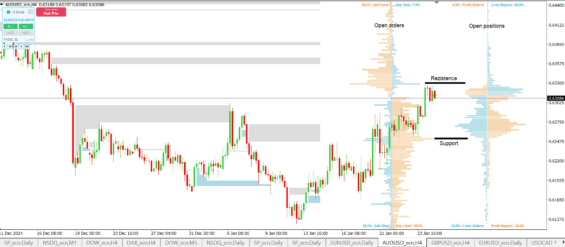 Indikátor order book na měnovém páru AUD/USD