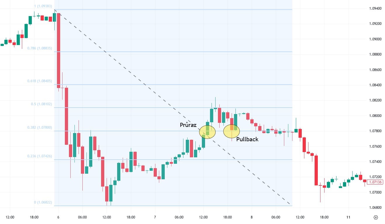 Cenový graf s vyznačeným pullbackem