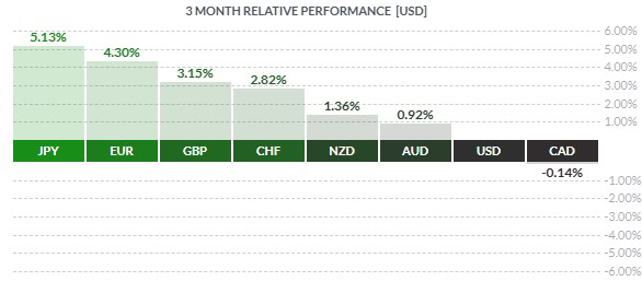 Nejsilnější měnou se v Q1 stal japonský jen, který proti americkému dolaru (USD/JPY) posílil o 5,13 %. Druhou nejsilnější měnou bylo euro (EUR/USD), které posilovalo především v březnu a připsalo si růst 4,30 %.