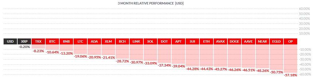 Z těch největších kryptoměn byl nejslabší Optimism, který v Q1 ztratil více než 57 % své hodnoty. Výrazný propad potkal také Ethereum, které ztratilo 44,43 % ze své hodnoty a zařadilo se tak mezi ty poražené.