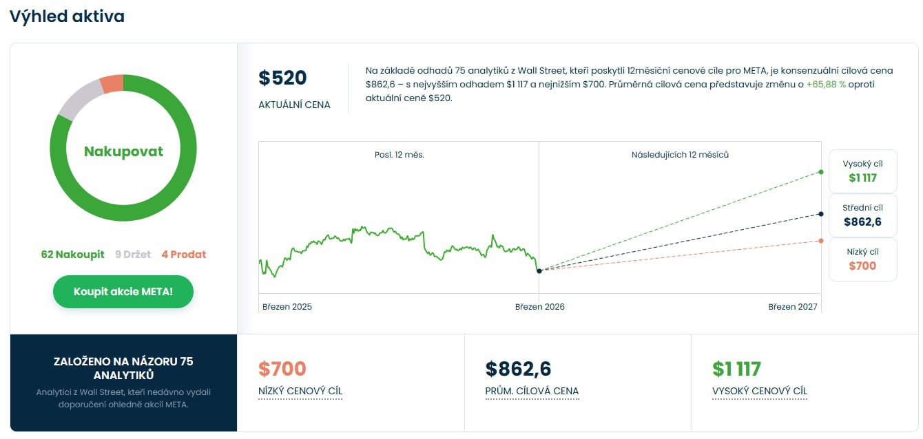 Cenová predikce pro akcie Meta od analytiků z Wall Street