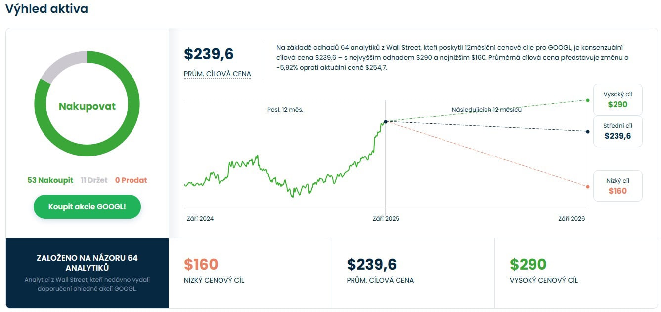 Cenová predikce pro akcie Alphabet od analytiků z Wall Street