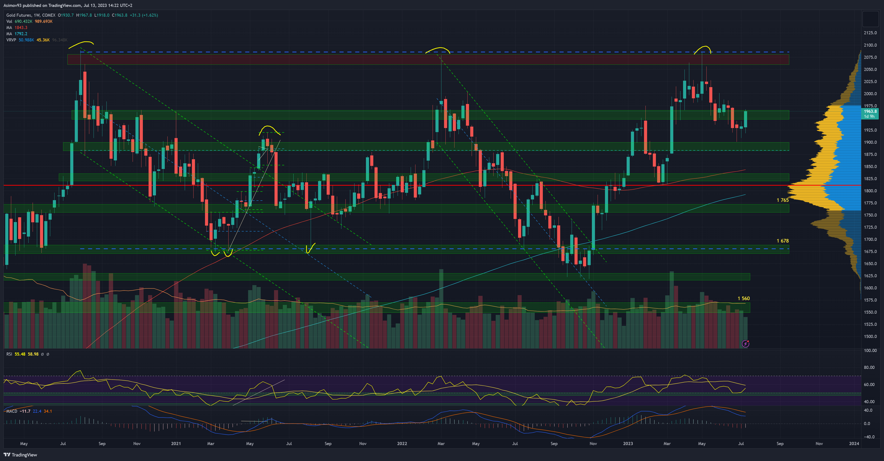 Zlato na týdenním grafu