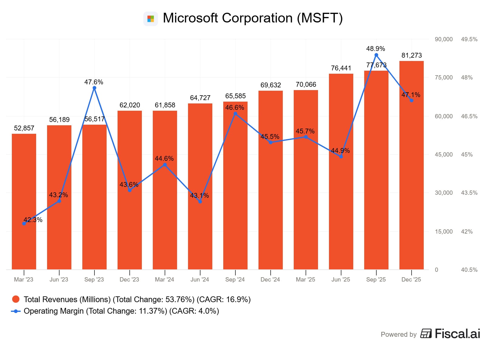 Ve druhém čtvrtletí fiskálního roku 2026 Microsoft vykázal tržby ve výši 81,3 miliardy USD, což představuje meziroční růst o 17 %.