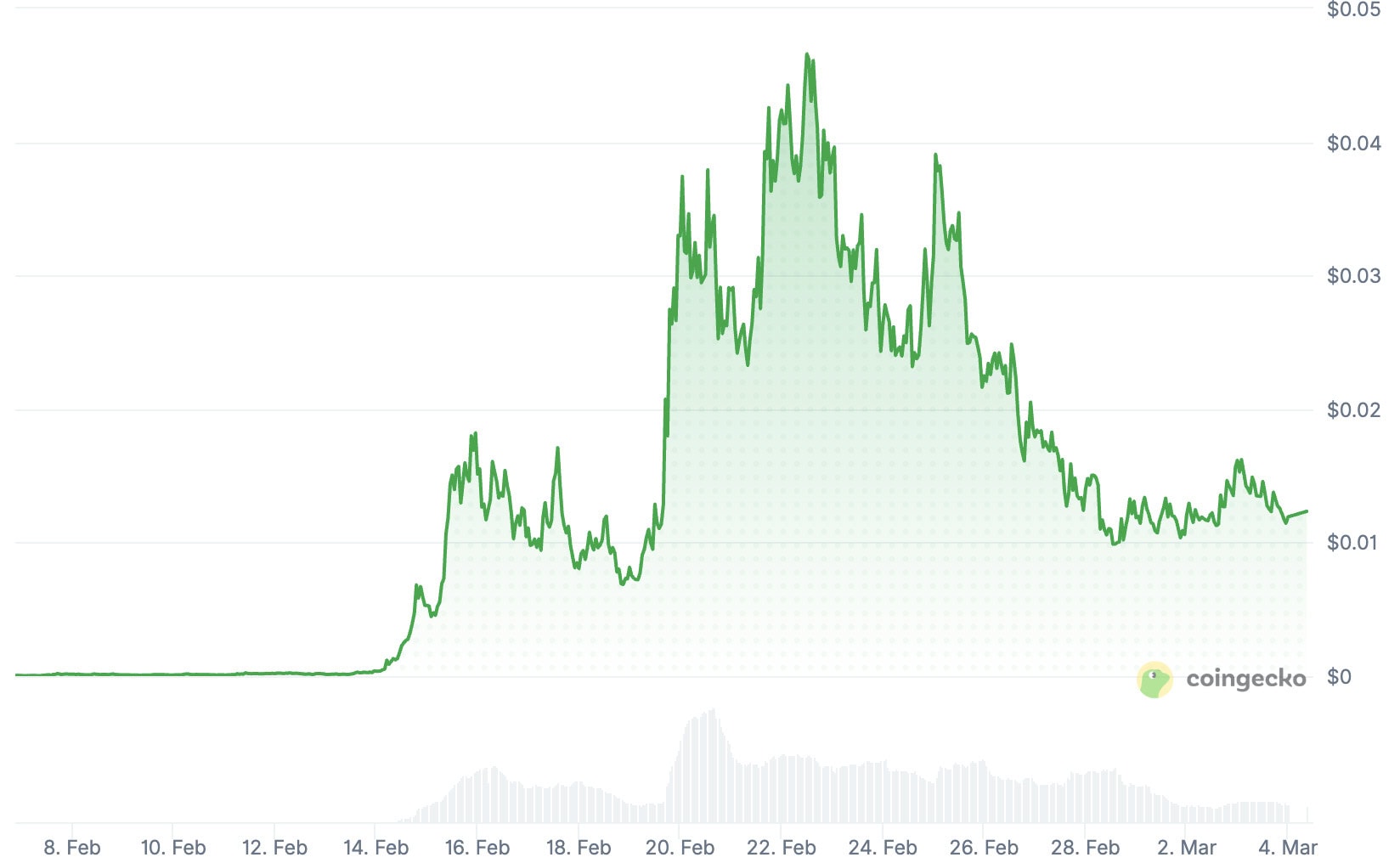 Tržní data z CoinGecko ukazují další oslabení ceny. Token se obchodoval kolem 0,013 dolaru, což představuje pokles zhruba o 48 % během sedmi dnů.