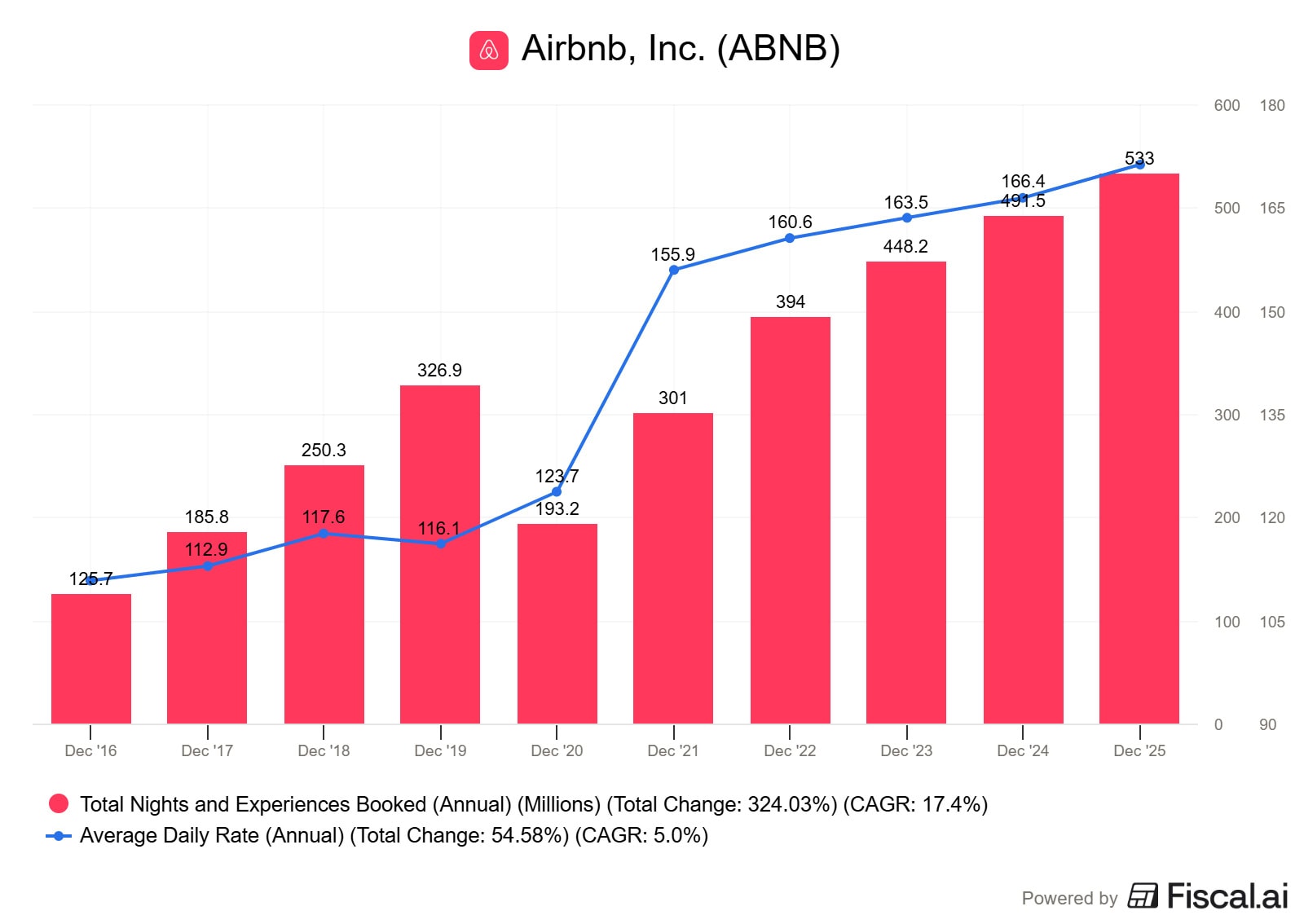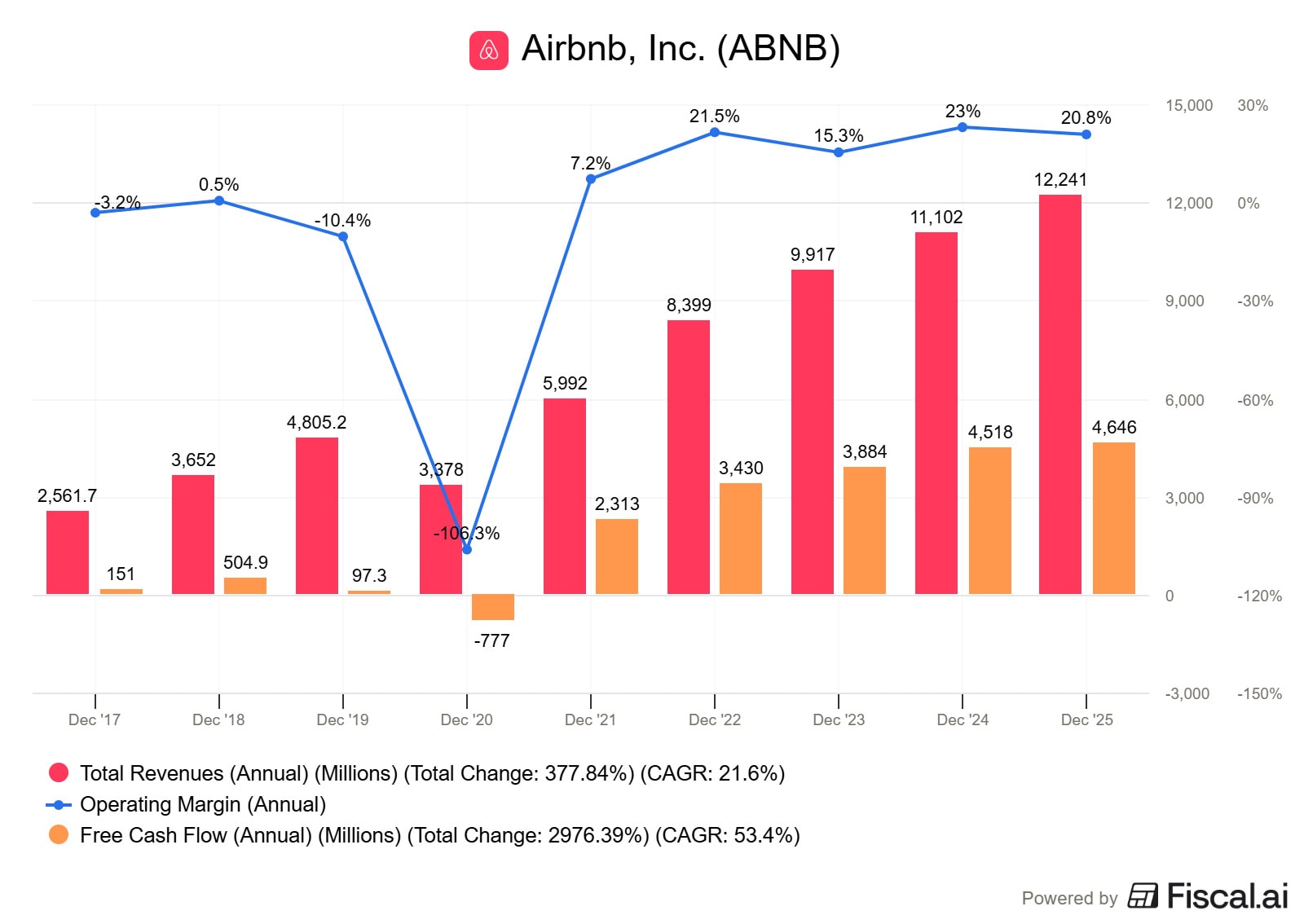 Na první pohled vypadá platforma jako učebnicový příklad růstu. Tržby Airbnb se od roku 2017 více než zčtyřnásobily a průměrné roční tempo růstu dosahuje 21,6 %. Působivé.