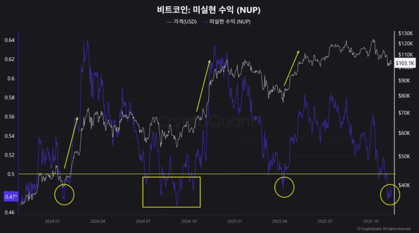 Bitcoin klesl za poslední týden o 10 % a obchoduje se u 103 000 dolarů. Klíčová metrika NUP ale padla na úroveň, která historicky signalizovala kapitulaci. Je prodejní panika konečně u konce?