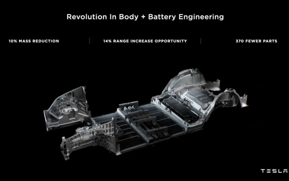 Touto úpravou Tesla docílí snížení celkových nákladů na výrobu elektromobilů, u kterých bude využito o 370 dílů méně. To sníží jejich hmotnost o 10 % a zároveň zvýší dojezd o dalších 14 %. Ve výsledku tak všechny úpravy a inovace zvýší dojezd o 54 % a o dalších 56 % se sníží cena za kWh.