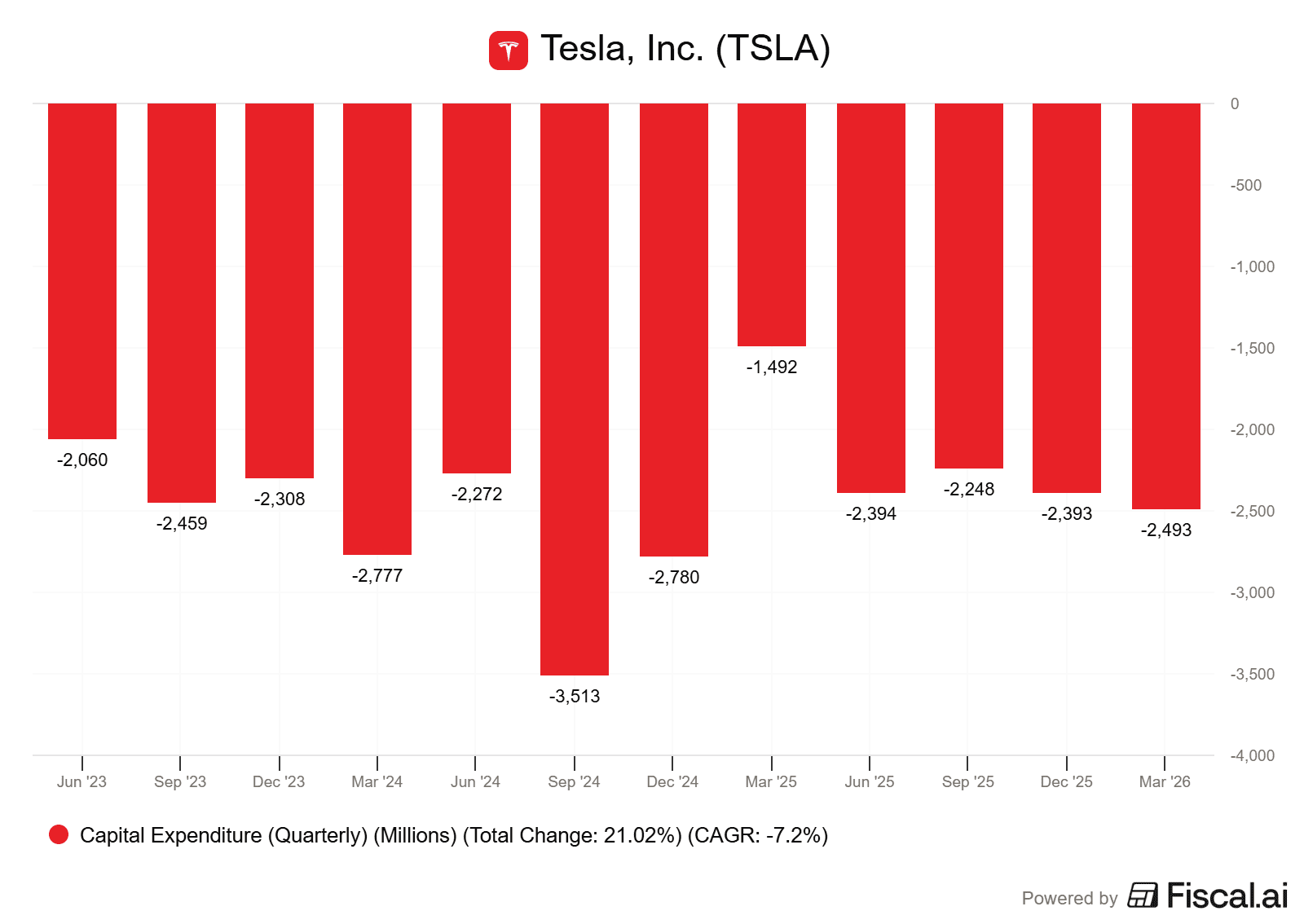 Vývoj kapitálových výdajů u Tesly