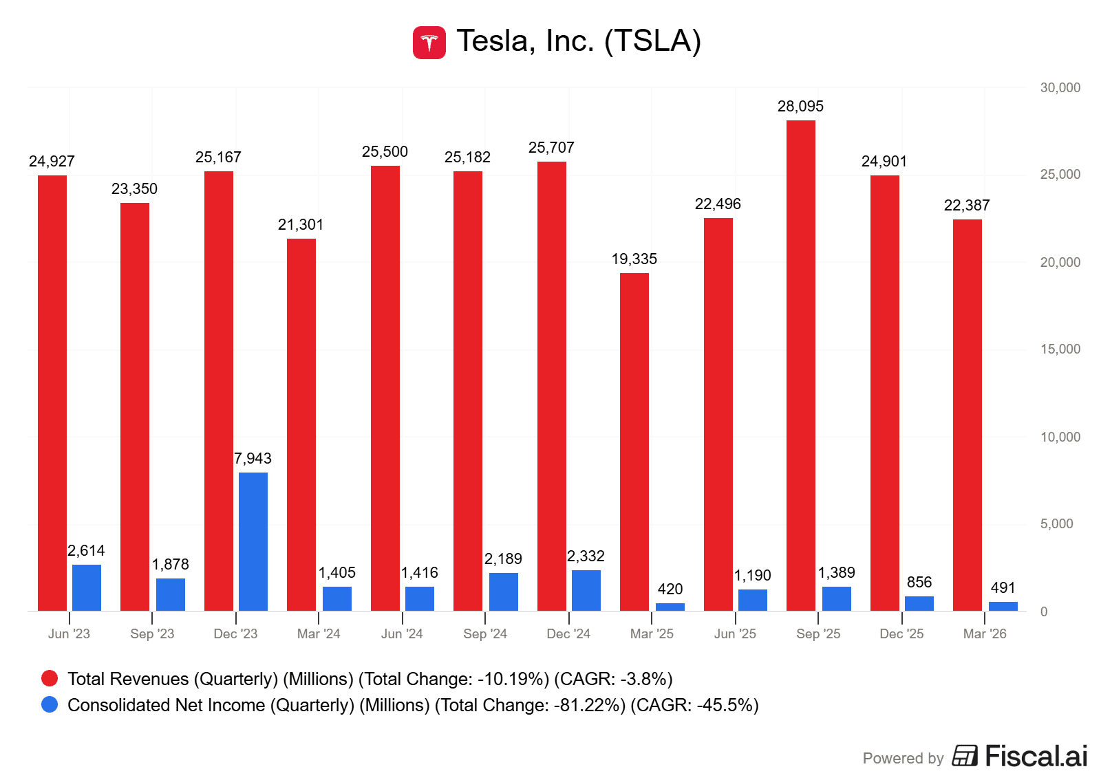 Energetický segment, zahrnující solární panely a bateriová úložiště, vygeneroval tržby ve výši 2,41 miliardy dolarů. Oproti loňským 2,73 miliardy dolarů jde o 12% pokles.