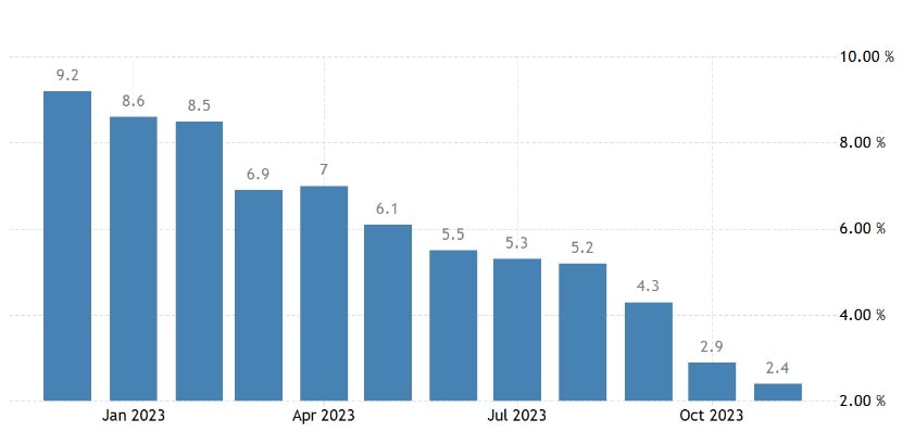 Meziroční růst spotřebitelských cen v eurozóně v listopadu zpomalil na 2,4 %. To je méně než 2,9 % v říjnu a méně, než očekávali ekonomové, kteří počítali s inflací na úrovni 2,7 %.