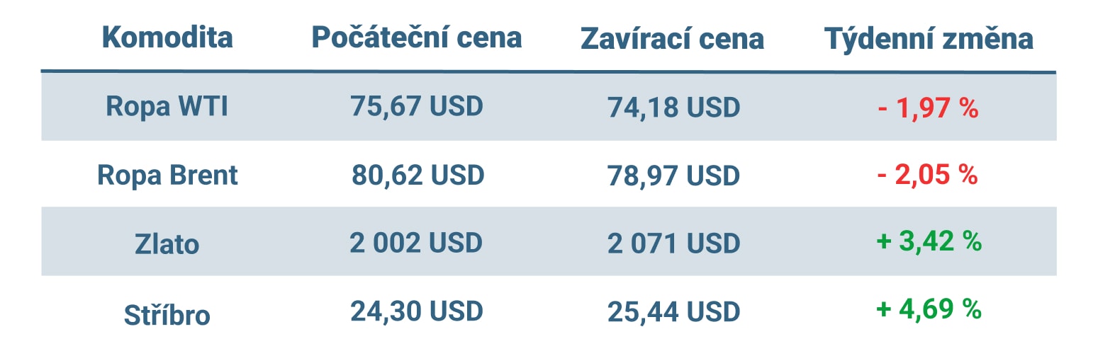 Vývoj ceny nejvýznamnějších komodit v tomto týdnu